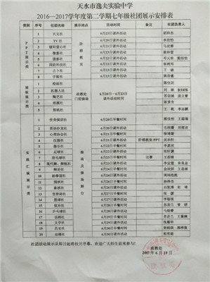 2016—2017学年度第二学期七年级社团展示通知