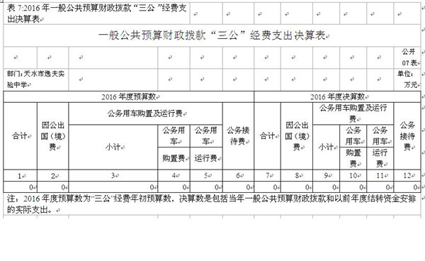 2016年“三公经费”预算0万元,决算0万元,完成年初预算0%,决算数大于(小于)预算数的主要原因:无三公经费开支。与上年同期相比增加(减少)0万元,增长(下降)0%;增加(减少)的主要原因:无。
