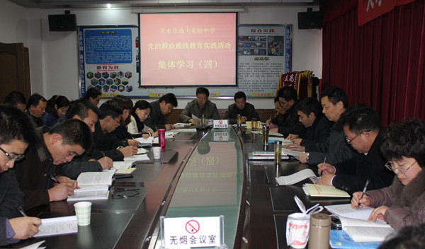 此次集中学习安排在双休日(星期六上午),副校长宋继凯同志主持,共同学习了习近平同志《在党的十八届一中全会上的讲话》、《在十八届中共中央政治局第一次集体学习时的讲话》、《认真学习党章,严格遵守党章》三篇文章,以及联系服务群众的一些经验做法。