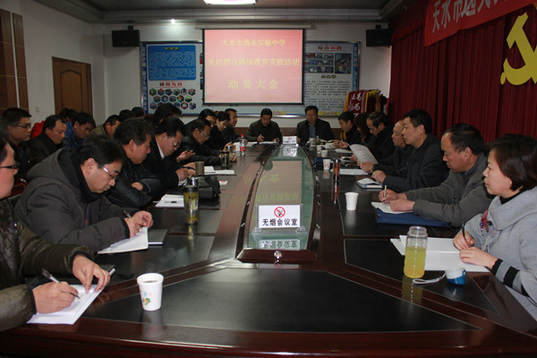 三阳开泰,大地回春,2月22日下午,bet36365备用网址党的群众路线教育实践活动动员大会在校实验楼三楼会议室召开。以市交通运输局党组副书记张栓科为组长的第十督导组一行4人 ,校领导班子陈建民、沈建玲、宋继凯七人在主席台就坐。学校全体在职党员和中层以上领导干部、年级组负责人共49人参加会议。