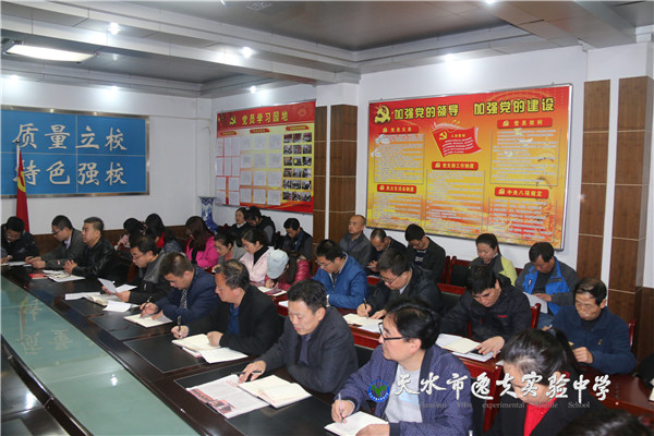 大会强调,10月18日上午,全校党员干部集中收看了党的十九大开幕式,认真聆听了习近平总书记代表第十八届中央委员会向大会所作的报告,对报告的新理念和“关键词”有了初步的掌握,要在此基础上,密切关注党的十九大盛况,深入理解领会报告中提出的新论断、新特点、新目标、新要求,迅速掀起学习贯彻的热潮,把学习、宣传、贯彻、落实党的十九大精神,作为当前和今后一个时期最为重要的任务,抓紧、抓好、抓实。要认真学反复学,深刻领会新时代中国特色社会主义思想,进一步增强“四个意识”,坚定“四个自信”,围绕教育教学等本职工作,全面贯彻党的教育方针,落实立德树人根本任务,切实把思想和行动统一到十九大精神上来,不忘初心,牢记使命,勇于担当,奋力开创各项工作新局面。