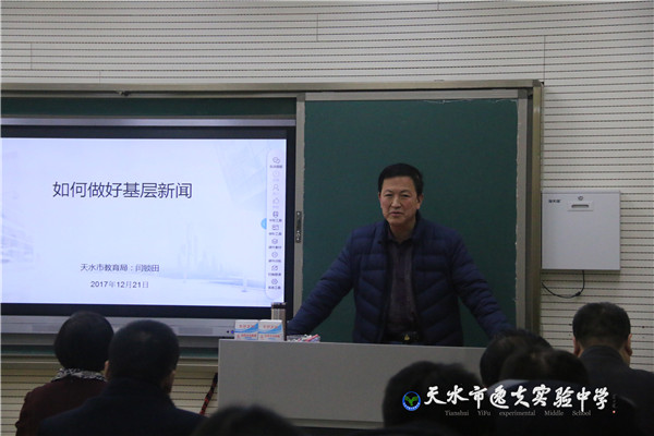 “基层通讯员身在基层、接近基层、了解基层,具有得天独厚的教育宣传优势。”12月21日下午,bet36365备用网址专门邀请天水市电教馆副馆长、资深基层教育宣传工作者闫锁田前来学校,做教育宣传专题讲座。学校领导、中层管理人员、各处室通讯联络员、语文教研组全体老师及青年教师共60多人认真聆听了讲座。