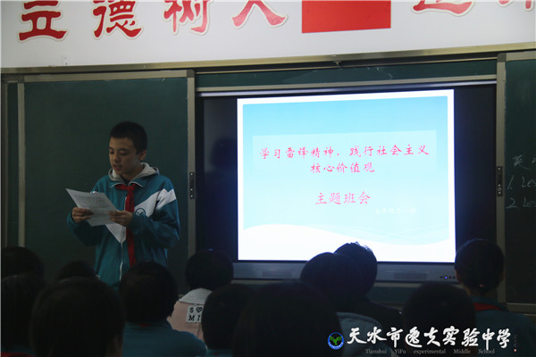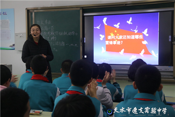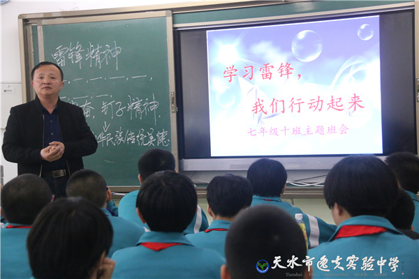 主题班会上,班主任老师向同学们诠释了学习雷锋的积极现实意义。七年级十三班班主任陈志刚告诉学生:“雷锋精神是中华民族传统美德与社会主义精神、共产主义精神最完美的结合,时代在发展,社会在变化,但雷锋精神永远都不会过时。”在进行的学习雷锋义务劳动中,七年级十班中队长李姝琪同学说:“参加义务劳动仅仅是一种形式,通过这种形式或者仪式,我们要秉承雷锋精神,树立和培养正确的人生观,争做优秀逸夫学子。”