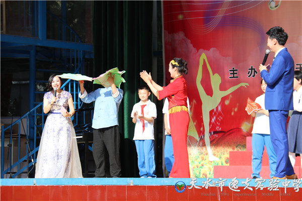 文艺演出中,由秦州区文化馆精心组织的传统艺术秦腔、手绢绝活表演、孙悟空表演秀、花式篮球、独唱等深受现场师生喜爱,掌声、喝彩声和尖叫声一浪高过一浪。由本校同学表演的合唱、健美操、陶笛、吟诵等节目也让与会专家眼前一亮。他们连连称赞,逸夫实验中学孩子们有着相当高的文化艺术底蕴和素养。 |