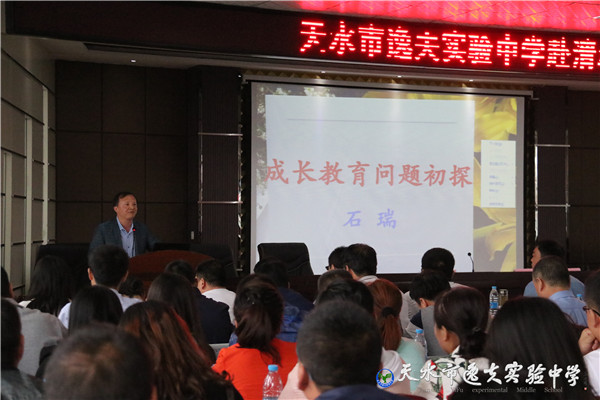 上午10:30,我校政教处副主任,天水市“十佳”班主任石瑞老师作了《青少年成长教育问题初探》的班主任工作报告。两个报告引起了与会校长和老师的共鸣,受到了高度赞扬。
