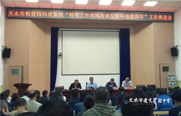 527上午,市教育局在天水开放大学阶梯教室召开局直系统“转变工作作风改善发展环境建设年”工作推进会,市教育局党委书记、局长伏金祥同志做了专题讲话,市教育局党委副书记郭双江同志就局直系统作风建设年活动进展情况进行了通报。我校科级以上全体干部参加了会议。会后,学校根据会议精神,结合当前重点工作,对近期主要工作作了安排部署,彻底转变工作作风 ,加强师德师风建设,优化育人环境,全力备战中考、全力做好善后、全力推进改薄。以“转变工作作风改善发展环境建设年”活动为抓手,全面推动学校各项工作健康开展。